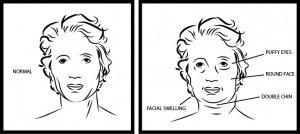 Swelling and rounding of the face, puffy eyes, and a double chin can develop because of adrenal dysfunction. An orange hue (almost appearing tan) of the face and very dark circles may also develop. The Adrenal Body type can also result in facial hair and swelling of the ankles.
