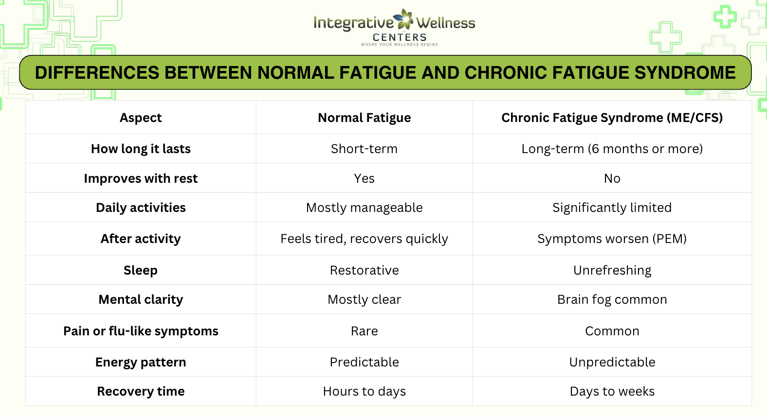 Integrative Wellness Centers offers functional medicine care for people with chronic fatigue in Michigan, with options for online consultations as well. Their team works with patients experiencing ME/CFS and related conditions such as digestive issues, hormonal imbalance, and immune dysfunction, using a personalized and supportive approach.