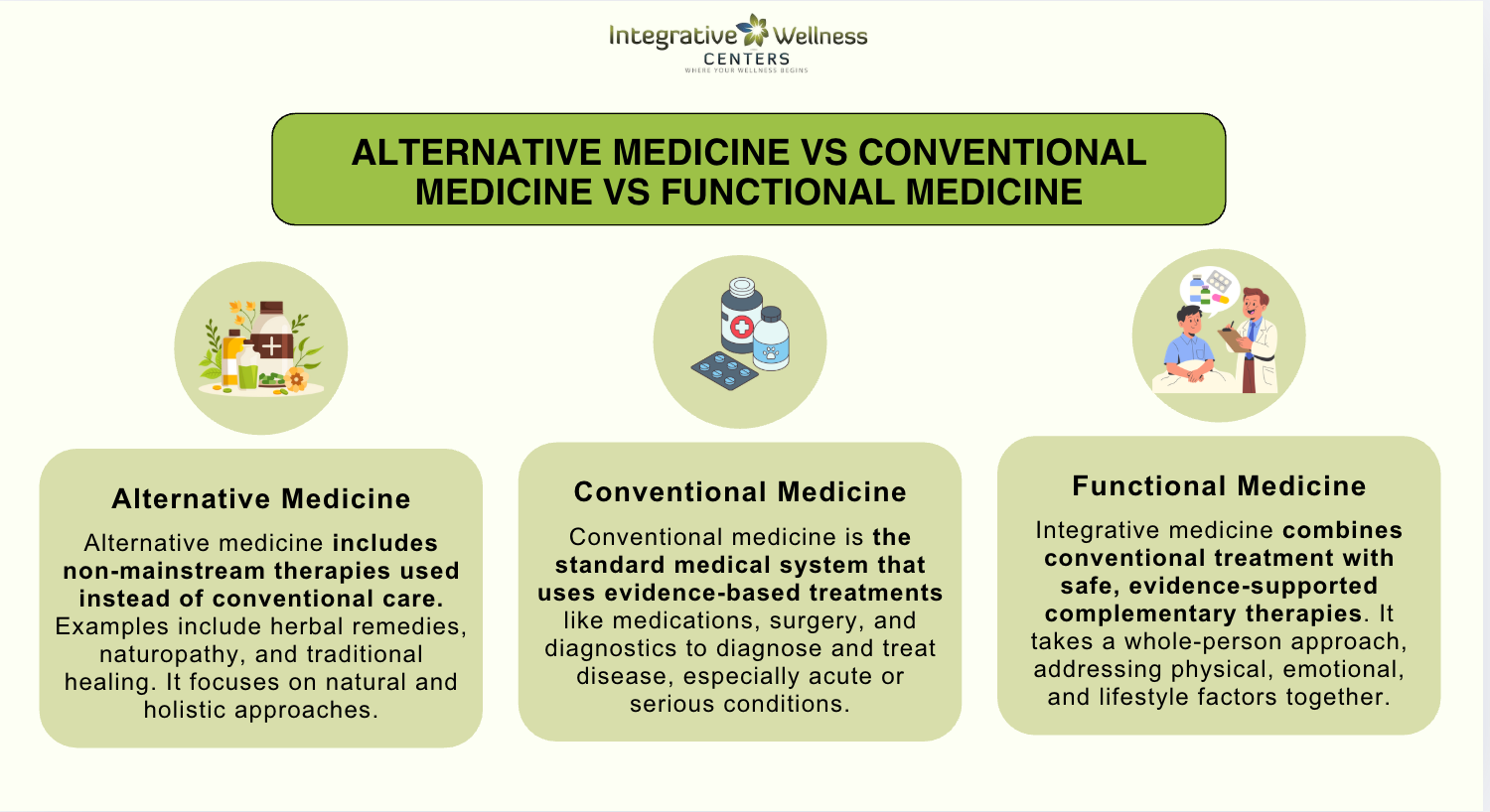 Learn more about a detailed comparison between functional medicine and conventional medicine