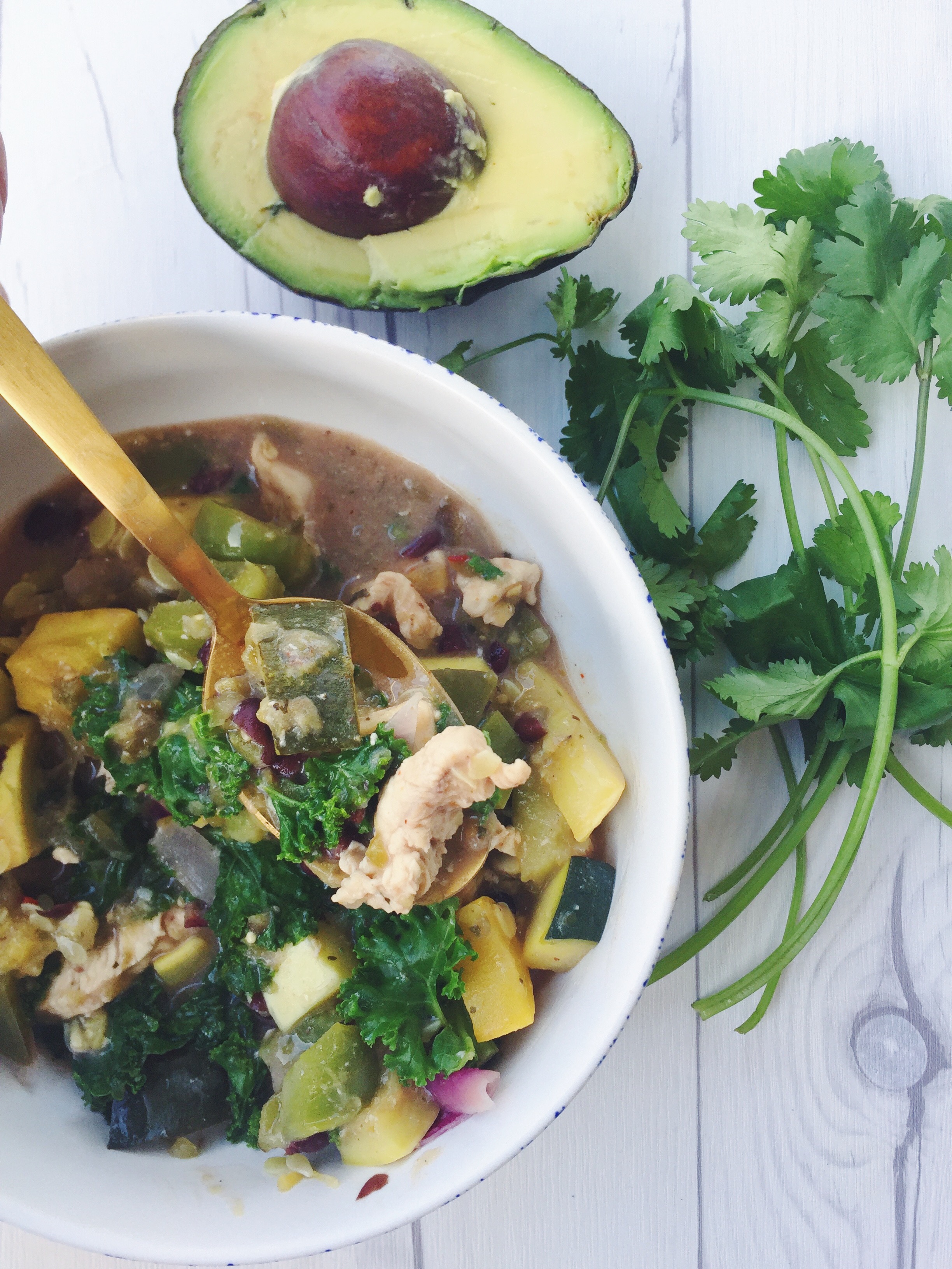 Breakfast: Chocolate coconut mint smoothie (coconut cream, mint, spinach, cacao powder, collagen protein)